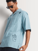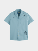 Elevate your casual style with the Scotch & Soda Blue Relaxed Fit Graphic Shirt. Made from a comfortable cotton-linen blend, this shirt is perfect for everyday wear. The relaxed fit ensures a laid-back look, while the graphic adds a touch of personality .this shirt is a must-have for any wardrobe.