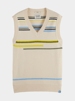 Introducing the Cream Soft Knit Vest by Scotch & Soda! Made with a cozy blend of acrylic, nylon, wool, and elastane, this sleeveless vest offers a comfortable regular fit. From casual outings to layered looks, this versatile piece is perfect for any occasion. Plus, it's from a premium brand