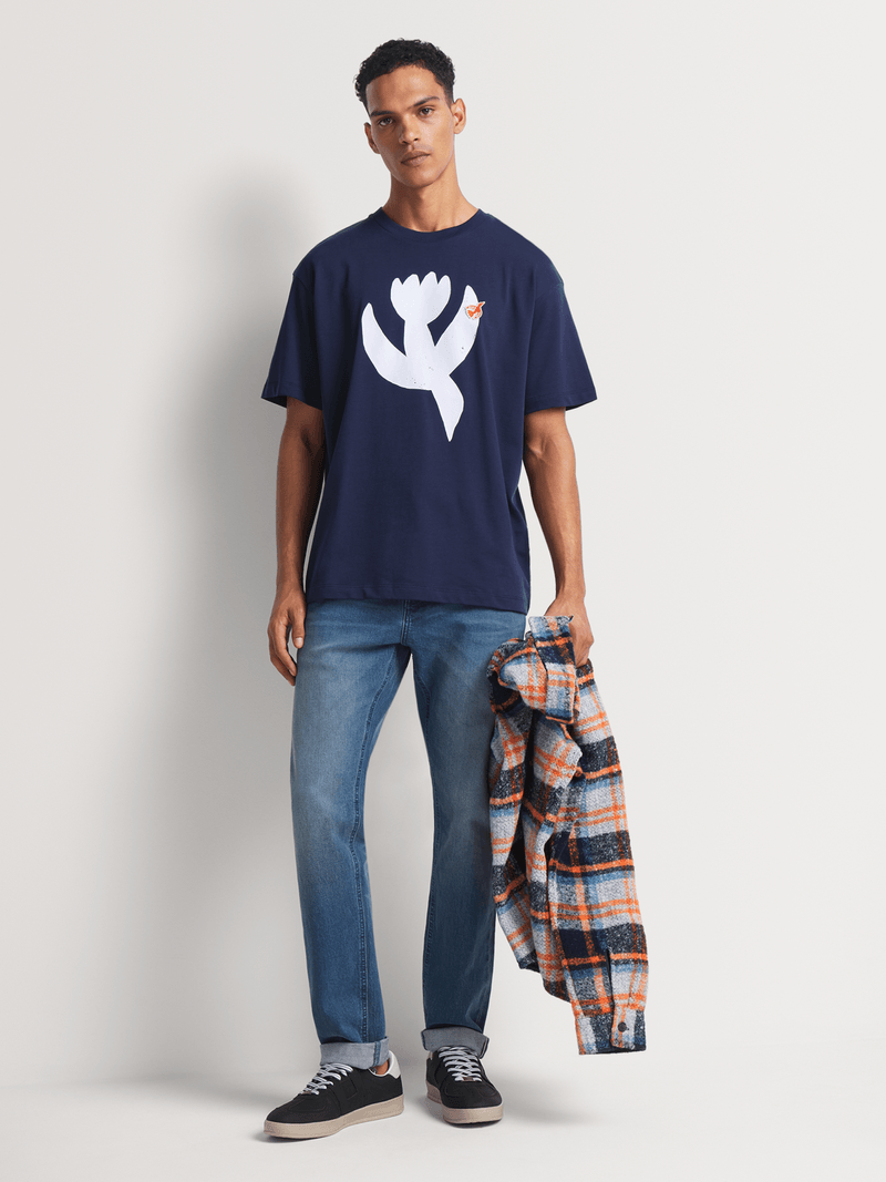 The Navy Core Free Spirit Peace B T-shirt by Scotch & Soda is the ultimate expression of laid-back style. Made from 100% organic cotton in Turkey, this premium tee exudes a carefree vibe. With a relaxed fit and timeless design, it's perfect for those who embrace individuality.