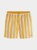 Get ready for the beach in style with the vibrant Men's Scotch&Soda Yellow Striped Mid-Length Swimshorts. Made from 100% polyester, these swimshorts are perfect for relaxing by the water. With a comfortable fit and timeless design, you'll be turning heads all summer long. Crafted in China, these swimshorts are a must-have for any beach day.