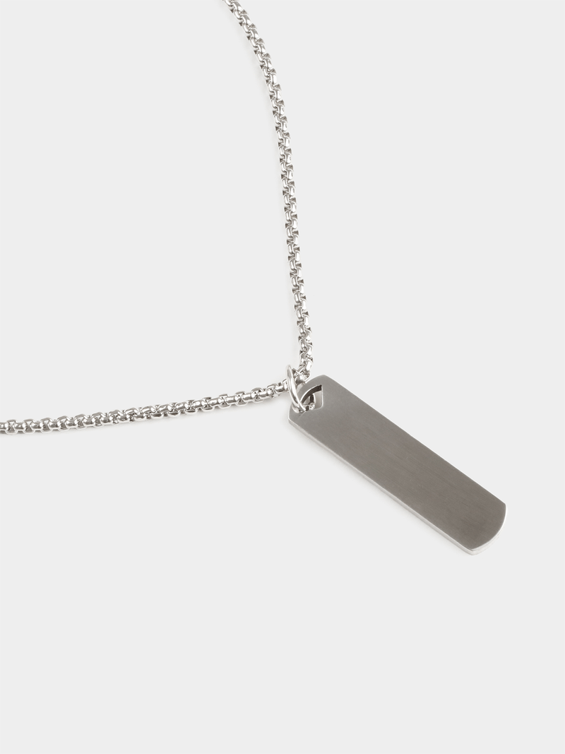 Elevate your style with our sleek silver pendant necklace, this necklace features a vertical bar, and adjustable closure. It adds a modern touch to any outfit. It's easy to mix and match with your favorite pieces.