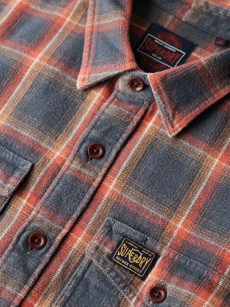 The check shirt is a classic of the great outdoors. Worn by manual workers and designed to protect, we've taken that staple and repurposed it in a contemporary style. All the essential styling cues are still there but added to the mix are style and supreme comfort. Go for the classic lumberjack look in a way that brings your personality to the fore. Relaxed fit – the classic Superdry fit. Not too slim, not too loose, just right. Go for your normal size. Heavyweight brushed fabric. Triple stitched key seams</li><li>Regular collar. Button fastening. Twin patch pockets with button flaps . Button fastened cuffs .Pocket logo patch. Placket logo tab.