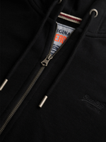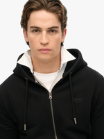 This black zip-up hoodie is a versatile staple for any wardrobe. Featuring the iconic embroidered logo and a comfortable fit, it's the perfect layer for year-round wear.