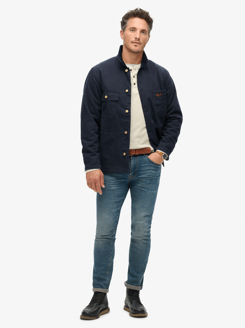 The Surplus Four Pocket Chore Jacket is the perfect staple to embrace the durable workwear style into your authentic look. The jacket is a timeless way to maintain your distinctive personal style and expand your layering options. Designed for comfort with a cosy interior and a durable exterior for a reliable vintage piece, this style is ready to give your cold-weather wardrobe the perfect hardy fashion refresh. Relaxed fit – the classic Superdry fit. Not too slim, not too loose, just right. Go for your normal size. Button fastening. Four front pockets. Single inner pocket. Button cuffs. Cord collar. Padded lining. Signature Superdry patch