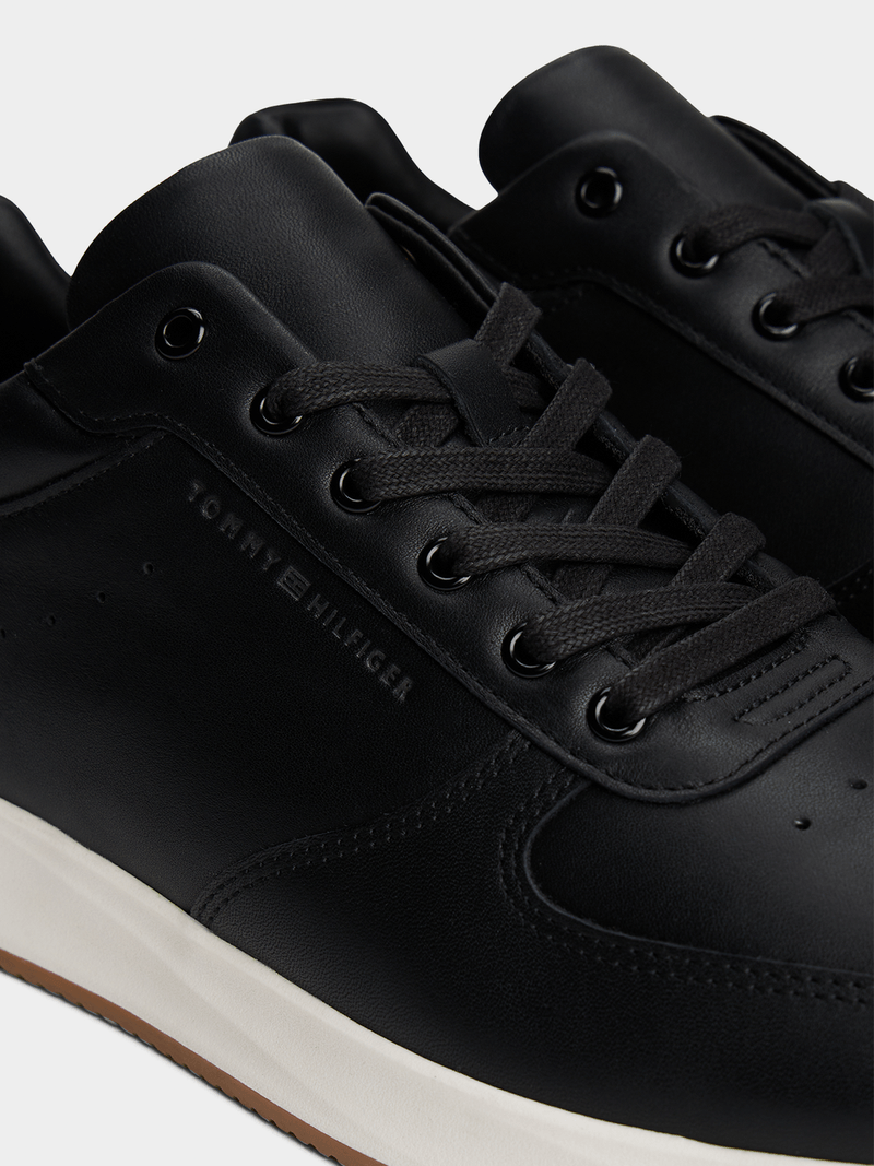 Step up your shoe game with these Tommy Hilfiger Premium Hybrid Sneakers. Made of high-quality leather, these black sneakers are both stylish and comfortable. Perfect for any casual outfit, these sneakers are a must-have for your wardrobe. Treat yourself to a pair today!