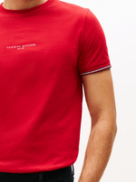 Short-sleeved T-shirt from Tommy Hilfiger. The signature tape around the cuffs adds a stylish pop of colour to this slim-fit pure cotton T-shirt.