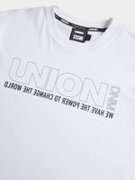 This Union-DNM Brand Carrier T-Shirt is made from lightweight and breathable cotton in a regular fit style with a classic crew neck and short sleeves. A Union-DNM logo on the chest completes the style.