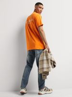 Introducing the vibrant Union-DNM Studio Orange T-Shirt, crafted for comfort and style. Made with cotton, this tee features a classic crewneck design. Easy to care for with cool wash, warm iron, and dry cleanable options. This shirt is perfect for any casual occasion.