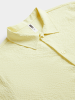 Complete the drip in this must-have shirt. Featuring a seersucker fabric, short sleeves and button up front. Pair it with the matching pants and some dope kicks.