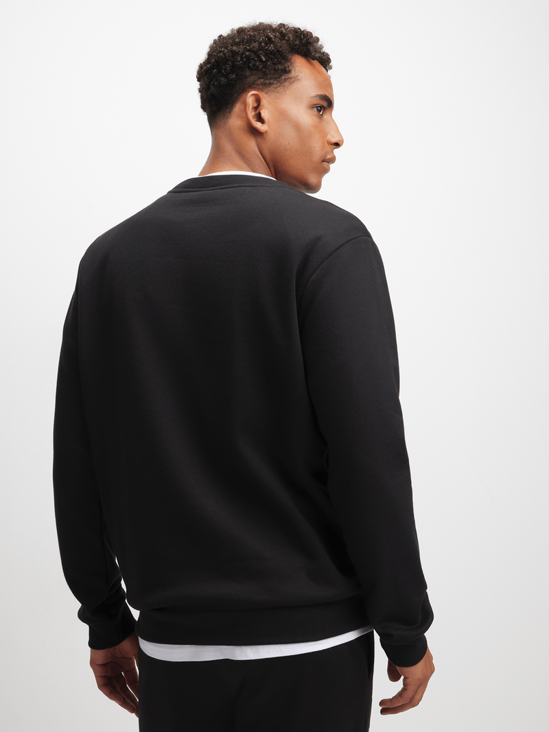 Stay cozy and stylish in our black essential sweatshirt. Made from a soft poly-cotton blend, this sweatshirt is perfect for everyday wear. With a classic design and comfortable fit, it's a must-have for your wardrobe. Easy to care for and perfect for layering.