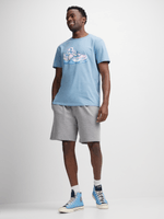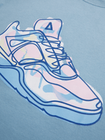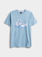 Elevate your casual style with our APX Graphic Sneaker Brush Stroke Tee in Powder Blue. Made from soft cotton knit fabric, this tee is locally made and easily returnable. Perfect for a trendy look that's effortlessly cool.