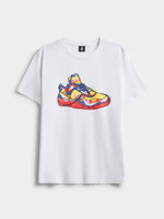 Elevate your casual look with our APX Graphic Sneaker Brush Strokes Tee. Made from comfortable cotton knit fabric, this tee features a stylish graphic design. Perfect for everyday wear, this tee is also returnable for your peace of mind.