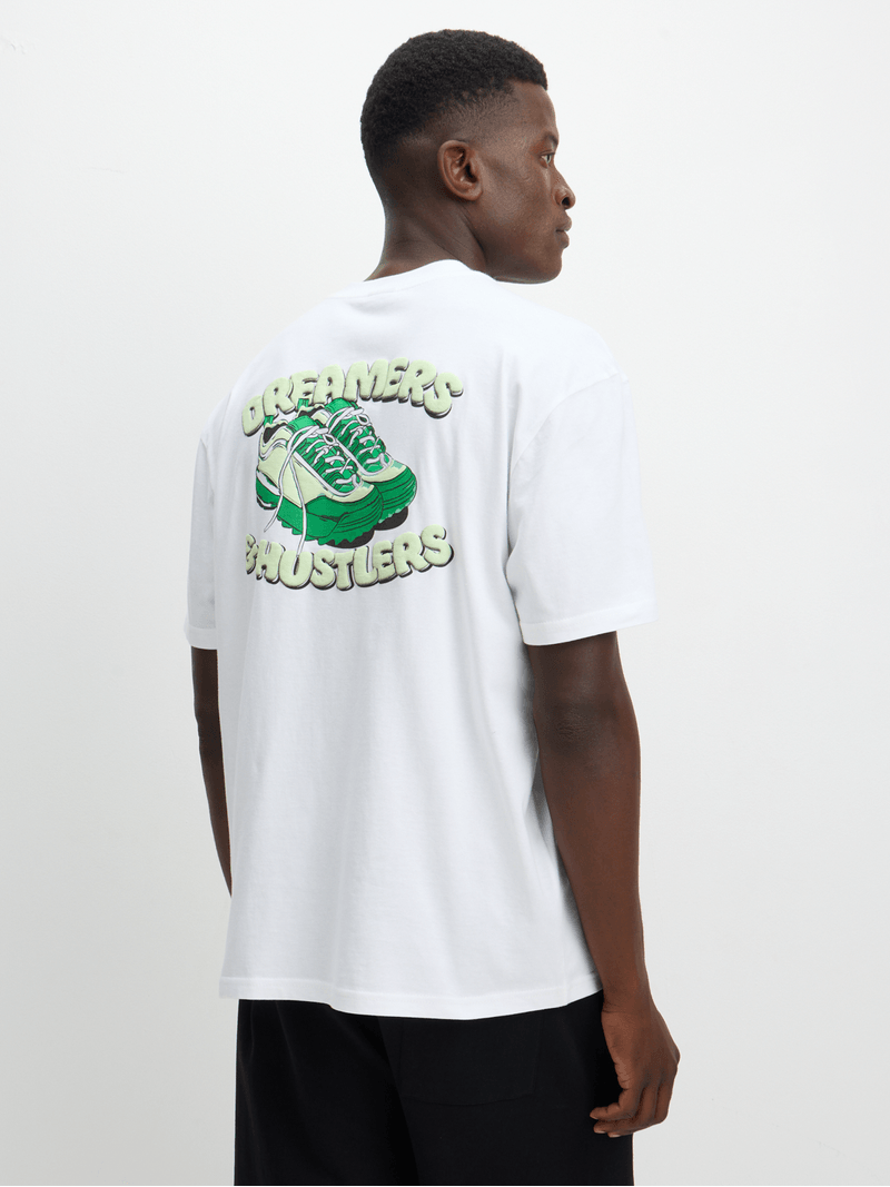 Get your hands on the APX Sneaker Puff Print White Tee made from cotton knit fabric for top-notch comfort. With a staff discount and rewards code included, this returnable tee is versatile and perfect for everyday wear. Stand out with the unique puff print design.