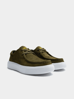Step out in style with the Grasshopper Linden Suede Olive/White shoe Made from premium suede, this sneaker is perfect for everyday wear. With a comfortable fit and stylish design, you'll love the versatile look of this shoe. Plus, it's easy to clean and maintain. Perfect for any casual outfit.