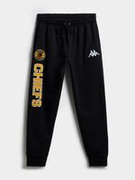 The Mens Kappa Kaizer Chiefs Eroi Black Fleece Pants are the perfect way to show your support for your favorite football team. These pants are made of high-quality fleece material that will keep you warm while you watch the game or cheer on your team. Plus, they come with a cool Kaizer Chiefs logo on the right leg for extra style points.