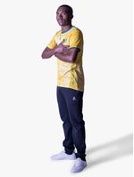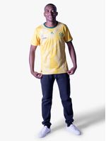 The South Africa 2023/24 Le Coq Sportif home jersey carries the South African flag in both the front and back panel, embodying nationhood, patriotism and essence of Ubuntu. The flag is also present on the sleeves and collar, while the SAFA logo is placed on the left chest. The jersey is predominantly yellow with green accents, reflecting the colors of the South African flag and the nickname of the national team, Bafana Bafana.