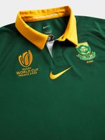 Crafted with utmost care and attention to detail, this jersey is a tribute to the legendary 2023 South African rugby World Cup Winners. This iconic green & gold jersey is a must have for any SA rugby supporter. Join the nation in celebrating rugby greatness by embracing the Springboks spirit with this limited edition iconic jersey.