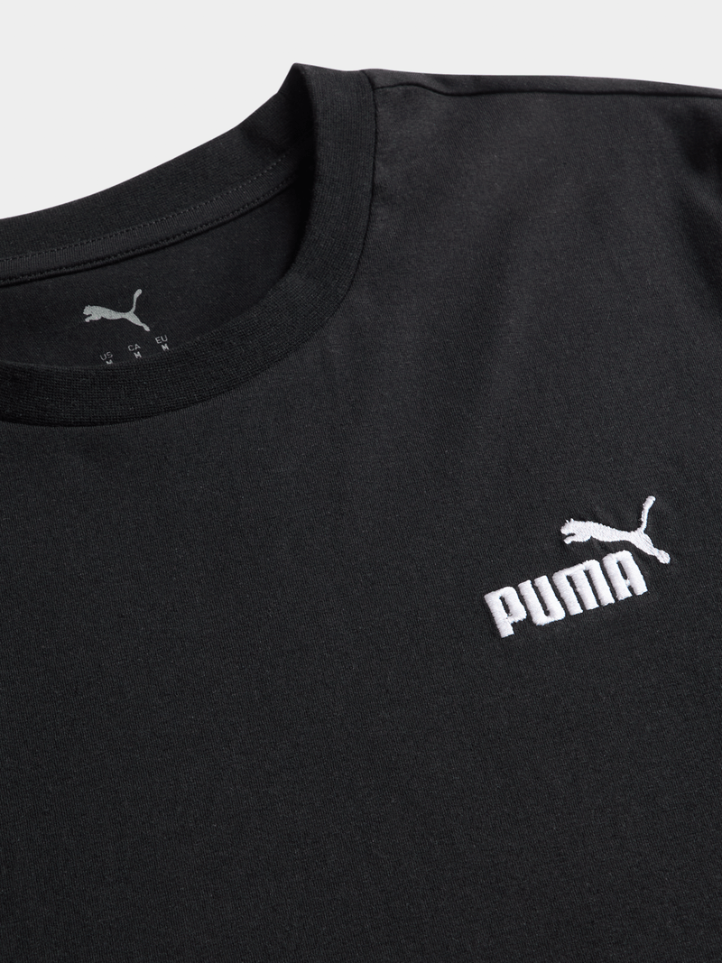 Get your hands on the PUMA Small Logo Tee in classic black. Made from comfortable cotton fabric, this tee is perfect for everyday wear. The small logo adds a subtle touch of brand flair. Plus, it's returnable, so you can shop worry-free. Look good and feel good in this versatile tee.