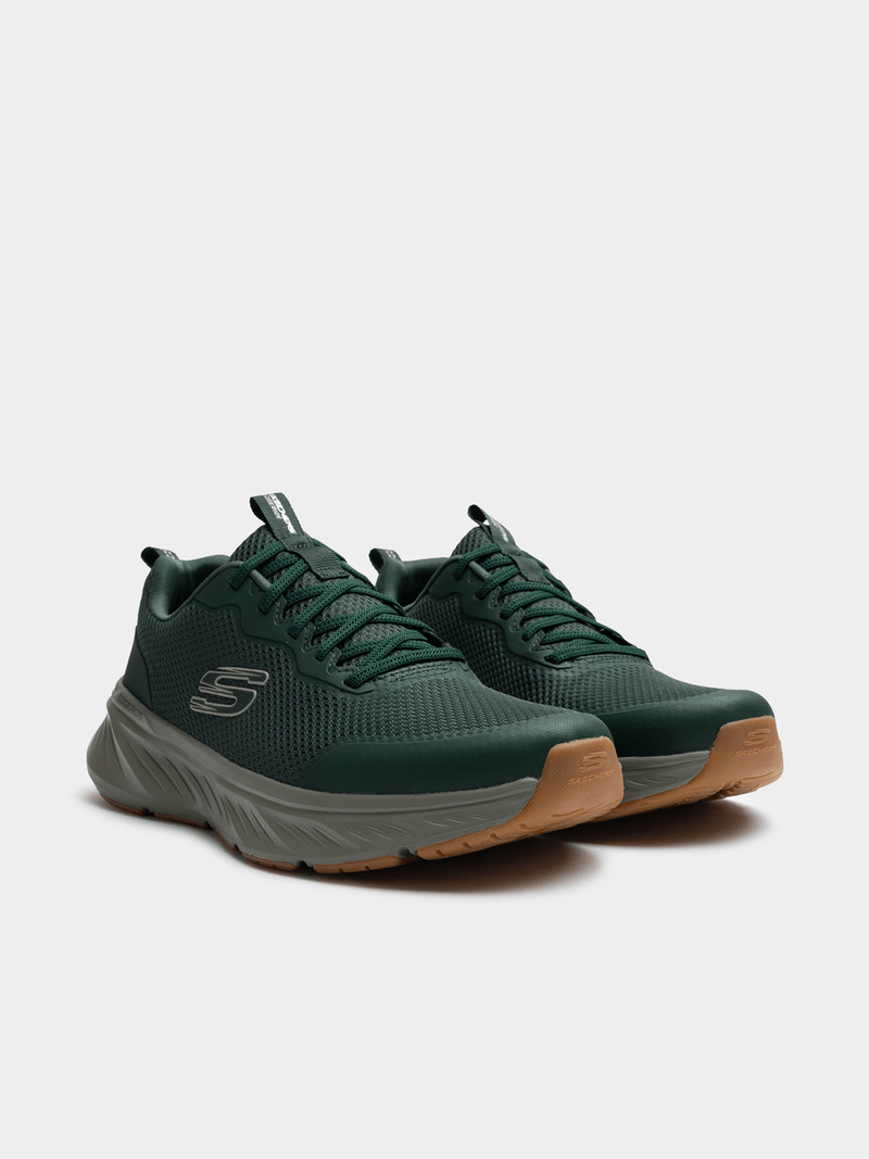 Enjoy well-cushioned performance while minding your footprint wearing Skechers Edgeride - Rekze. This product's upper is made with at least 20% recycled content by weight, which helps to reduce waste, this vegan athletic style features a mesh and synthetic overlay upper with stretch laces, a well-cushioned midsole, and a Skechers Air-Cooled Memory Foam® insole. Our Planet Matters®: Good for your feet. Good for the world.