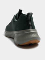 Enjoy well-cushioned performance while minding your footprint wearing Skechers Edgeride - Rekze. This product's upper is made with at least 20% recycled content by weight, which helps to reduce waste, this vegan athletic style features a mesh and synthetic overlay upper with stretch laces, a well-cushioned midsole, and a Skechers Air-Cooled Memory Foam® insole. Our Planet Matters®: Good for your feet. Good for the world.