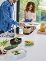 Go from storage to serving in no time with the Mepal EasyClip Glass Food Storage Box. Made from hardened borosilicate glass that is suitable for oven use, simply remove the BPA-free lid and pop it straight in the oven. The dish, including the lid with a steam vent, can be used in the microwave - just open the clip to release steam. For a leakproof and airtight seal, simply click the vent to close.