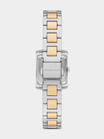 This Michael Kors ladies' watch features a 22mm rectangular case with a glossy mother-of-pearl and white dial. The sleek, petite design adds a touch of timeless elegance, perfect for both casual and formal occasions.