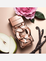 Michael Kors Pour Femme Absolu embodies the essence of the Michael Kors woman: radiant, elegant and confident. Bright top notes of juicy pear immediately command attention, perfectly balanced by Damask rose at the heart of the scent. Sensual Madagascar vanilla combines with tonka bean at the base for an addictive finish.Unabashedly feminine and romantic, this amber fruity floral fragrance evokes the pleasure of an escape without limits.