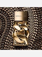 Encased in a sculptural chain-link bottle, our new fragrance evokes a sense of luxury and escape – capturing the multifaceted allure of the modern woman.