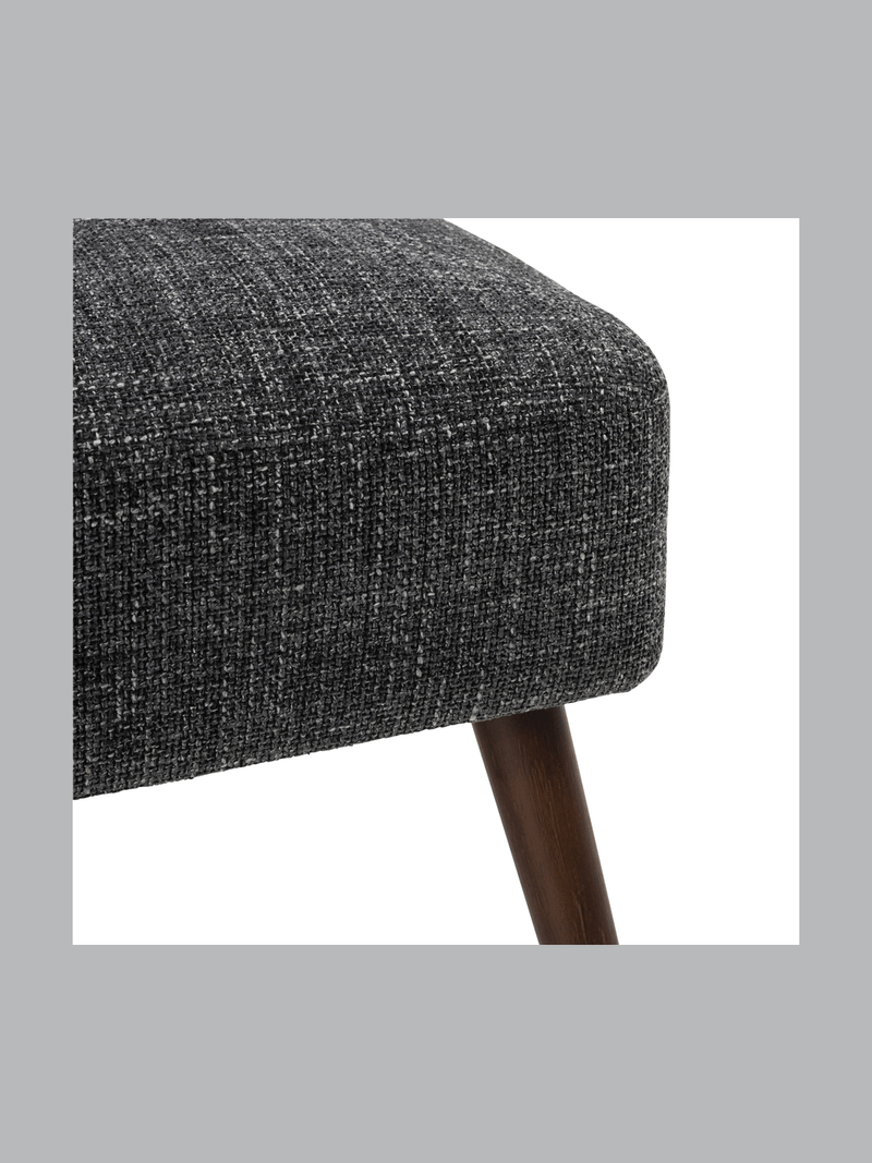 With its soft, rounded and comfortable cushioning, the Mila armchair is the perfect chair to add plenty of style to a smaller space. The textured fabric upholstery is beautifully contrasted with sophisticated solid wooden legs with a walnut stain.