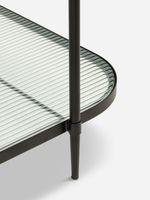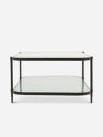 Modern and understated with elegant details, the Mila Coffee Table offers ample space for decor, books, or everyday essentials. A stylish addition to any room, a smooth-tempered glass top is contrasted by a ribbed glass bottom shelf and wrapped in a slim black coated metal frame with subtle tapered legs and soft, rounded corners.