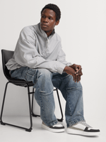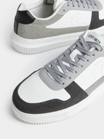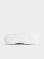 The Markham Men's 1873 White/Grey Court Sneakers showcase a sleek, minimalist design with a white nubuck upper and grey accents. The durable sole provides optimal grip. Ideal for versatile styling, these sneakers offer a clean, modern aesthetic perfect for casual outfits or a refined streetwear look.