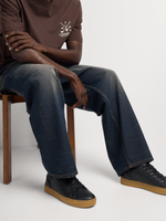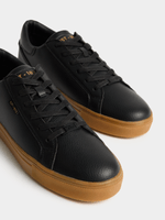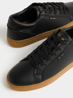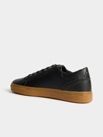 A modern court sneaker designed for effortless versatility. The sleek black PU upper delivers a polished finish, while the gum sole adds subtle contrast and all-day comfort — perfect for men who want style that moves easily from weekday casual to weekend plans. Pair with slim chinos and a crisp golfer for elevated casual, or wear with dark denim and a plain tee for effortless off-duty confidence.