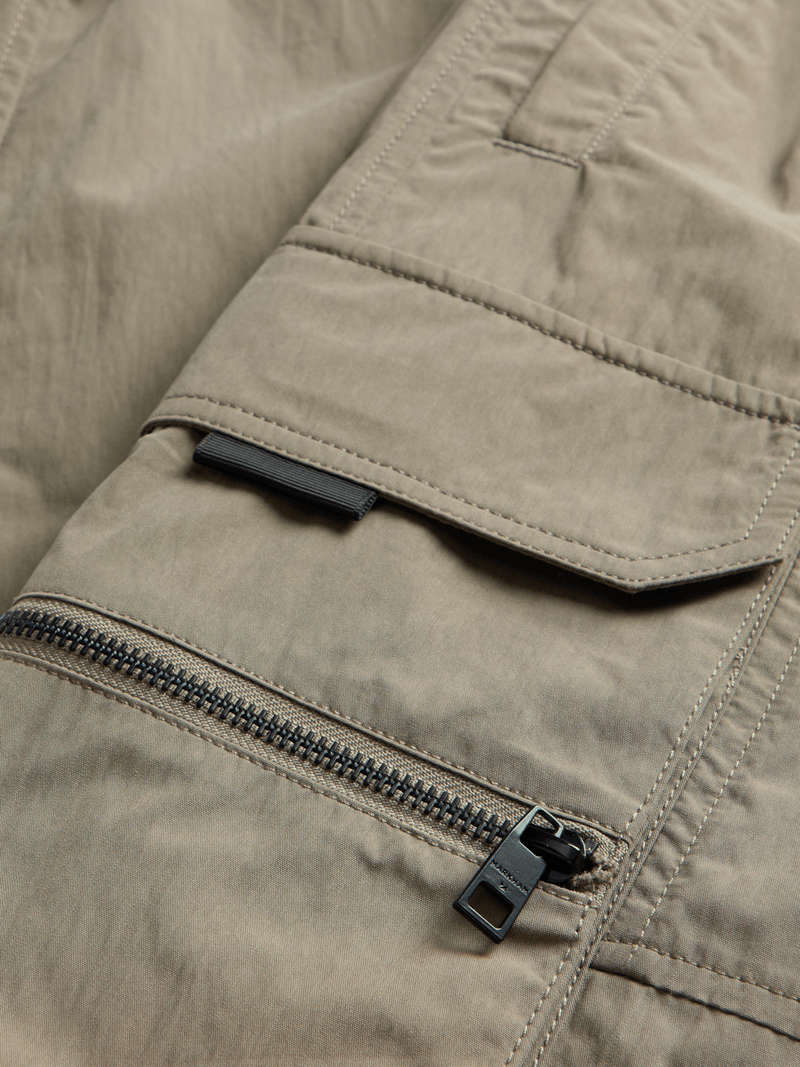 Introducing Markham's stylish utility pants with zip details and cuffed hems in a trendy mocha color. Made of a durable cotton nylon blend, these pants feature a tapered fit for a modern look. Easy to care for, these pants are a versatile addition to any wardrobe.