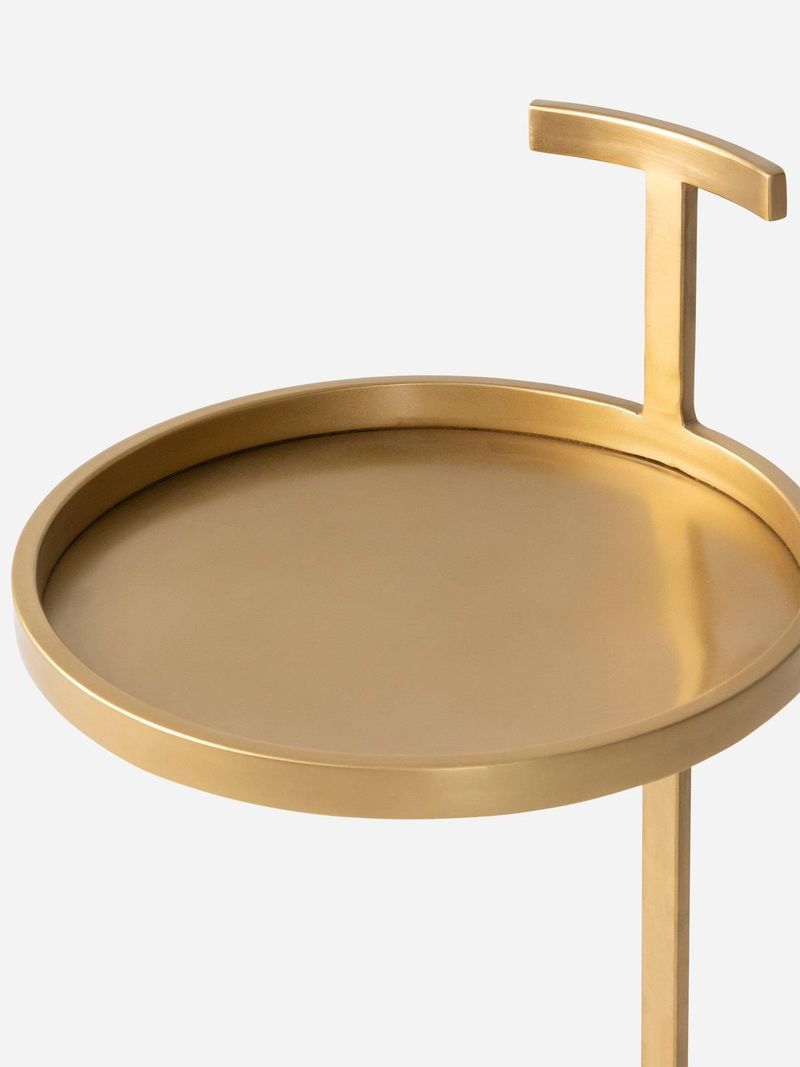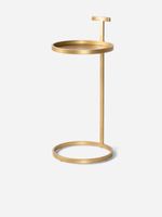 Bring a luxe, modern touch to your living space with the Mobi Side Table. Made from brass-plated metal in an interesting, sculptural shape, it's the perfect addition to any seating arrangement.