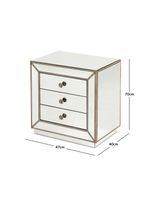 The Momo Miror Pedestal adds a touch of timeless glamour to your space. Framed with brass beaded detailing, this piece blends vintage elegance with modern functionality. Its mirrored panels brighten any room, while three smooth-gliding drawers offer ample storage. Ideal for a bedside table, living room, or entryway.