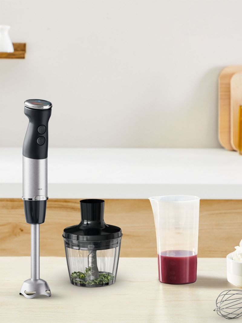 Enjoy effortless, optimum power with the Moulinex Quickchef 3 in 1 Hand Blender. Its exclusive Powelix Technology, combined with a powerful 1000 W motor, ensures high-performance blending and incredibly smooth results on even the hardest ingredients. Easily prepare a range of dishes and stay in total control with 10 non-stop adjustable speeds and an intuitive, easy-to-use dial. Plus, an anti-splash guard and non-slip handle provide total comfort of use, along with dishwasher-safe parts for easy clean-up. Powelix Blade Technology gives you incredible smoothness, creamy texture, and effortless blending on even the hardest ingredients.