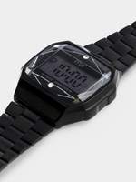 This stylish Black Plated bracelet watch features a hexagonal case and black digital face.