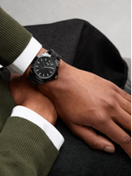 This bold Black Plated bracelet watch features a round case and textured black dial.