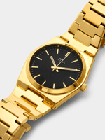 This stylish set includes Gold Plated bracelet watch with a round case and sleek black dial paired with a Gold Plated curb link ID bracelet.