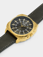 This classic watch features a large Gold Plated square case, sleek green dial and green faux leather strap.
