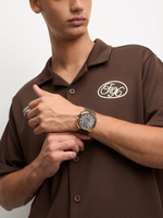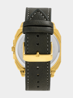 This classic watch features a large Gold Plated square case, sleek green dial and green faux leather strap.