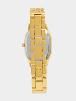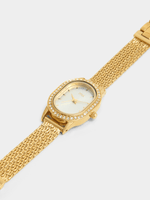 This glamorous Crystal-embellished watch features a Gold Plated oval case, silver dial and multiple chains strap.