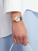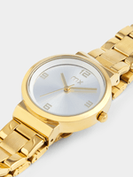 This stylish Gold Plated bracelet watch features a round case and silver toned dial.