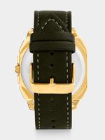 This stylish watch features a Gold Plated square case, sleek olive green dial and olive green faux leather strap.