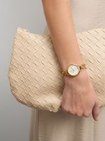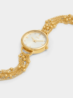 This glamorous watch features a Gold Plated round case, sleek white dial and multistrand beaded chain bracelet strap.