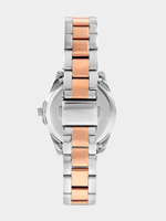 This classic watch features a Rose Plated round case, sleek charcoal dial and two-tone bracelet strap.