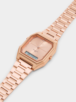 This retro-style bracelet watch features a Rose Plated octagonal case and blush toned anadigi dial.