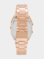 This retro-style bracelet watch features a Rose Plated octagonal case and blush toned anadigi dial.