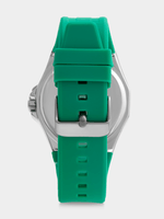 This stylish watch features a Silver Plated round case, green gradient dial and green silicone strap.