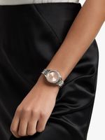 This glamorous Crystal-embellished Silver Plated bracelet watch features a round case and sleek pink dial.